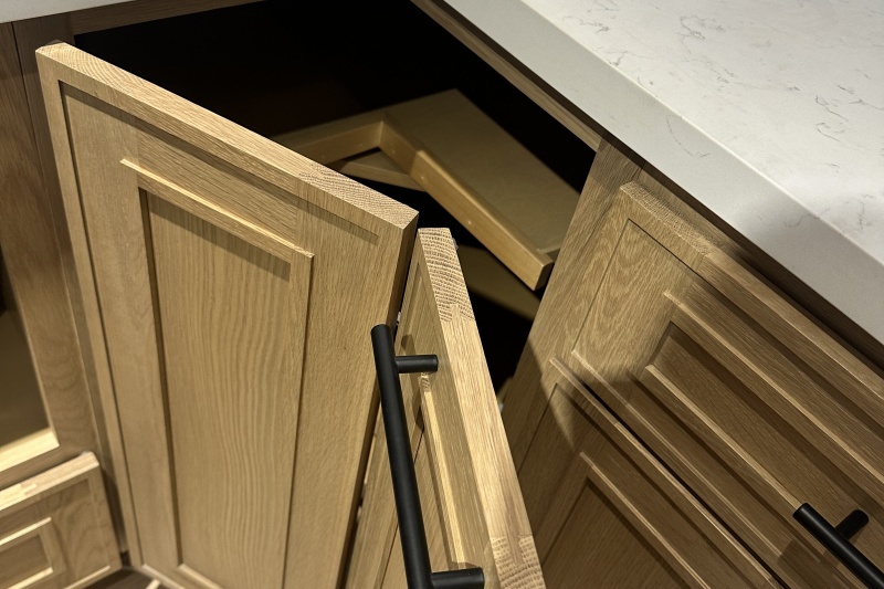Naturally, the first step to maximizing functionality is to select a corner cabinet that fits the kitchen dimensions perfectly, ensuring the cabinet edges align seamlessly with the walls without wasting any space. If standard-sized corner cabinets are not suitable, customizing the size of kitchen cabinets is an option to enhance space utilization.