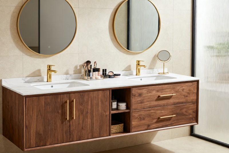 At Union Woods, we offer both single and double bathroom vanities, which can be selected according to one's own needs. Generally, if the bathroom space is sufficient, it is better to choose a double-basin vanity with a makeup area, as it offers greater storage space and higher practicality.