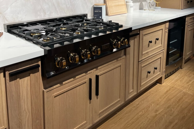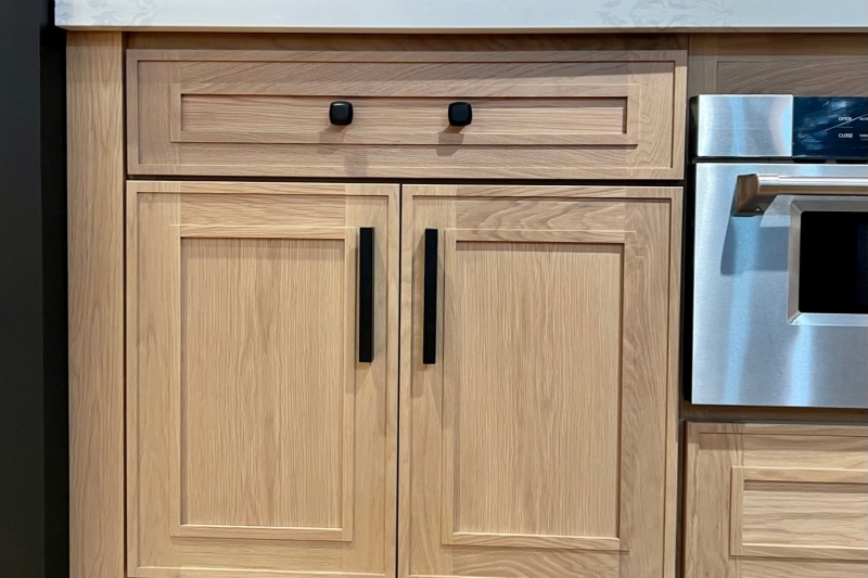A: Oak cabinets pair well with brass or bronze hardware, which highlights their natural warmth. If you want to create contrast, matte black hardware can add a modern touch.
