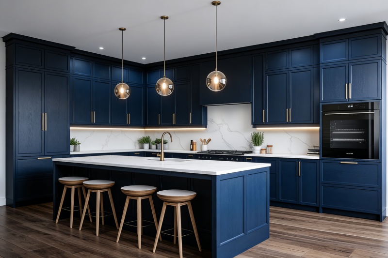 Q2: What are the core advantages of modern blue slim shaker plywood kitchen cabinets?