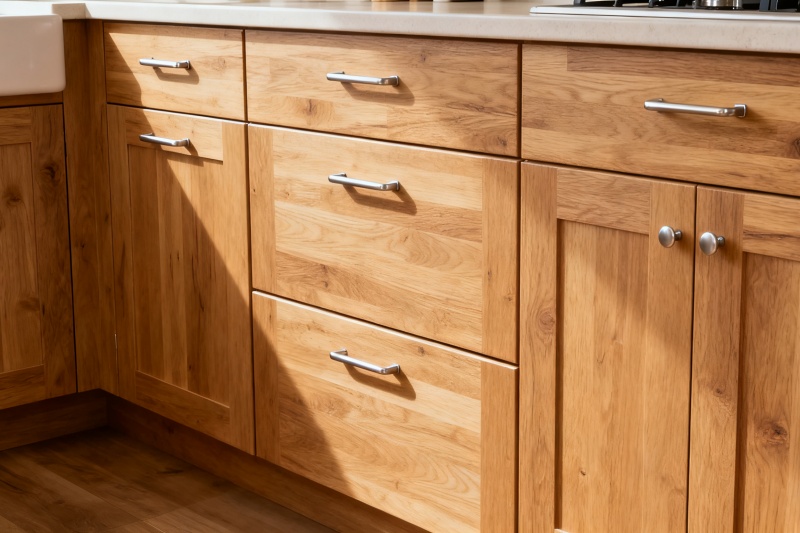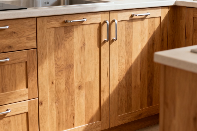 Kitchens equipped with natural oak cabinets exude a greater sense of texture. The natural wood color looks pleasant and remains timeless even after a long time. Moreover, white oak’s hardness and impact resistance are far beyond that of ordinary wood, making it extremely suitable for kitchen use, as it can effectively prevent cabinet deformation.