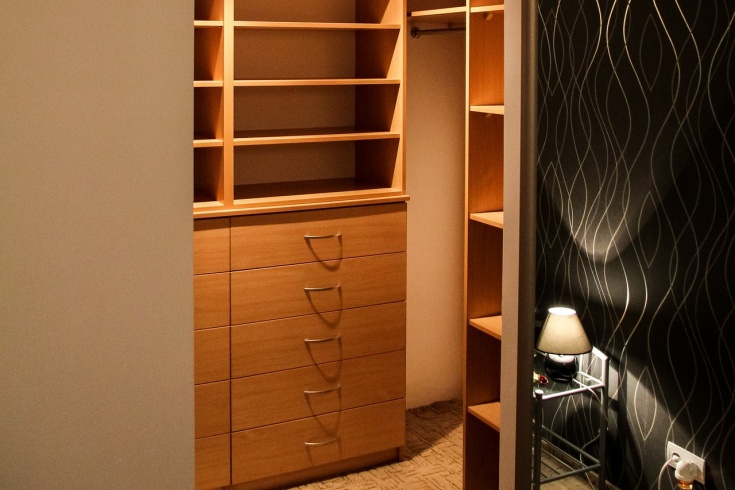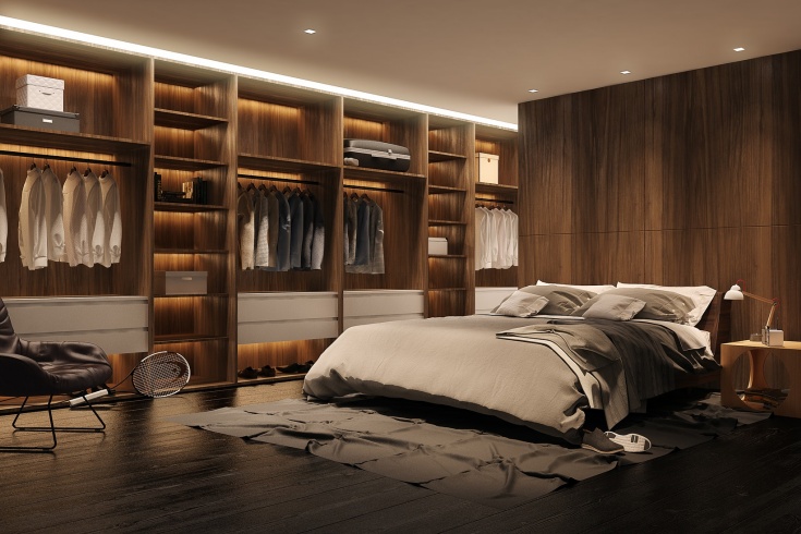 Wardrobes in walk-in closets mostly use an open design for greater convenience in daily use.