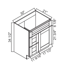 2421 | 24”WX34.5”HX21”D VANITY-2D | 2421-FD | 24”WX34.5”HX21”D VANITY-FULL DOOR | 3021DL | 30”WX34.5”HX21”D VANITY-1D-2DRA LEFT | 3621DL | VANITY 36”WX21”DX34.5”H-2D - 2DRA LEFT |