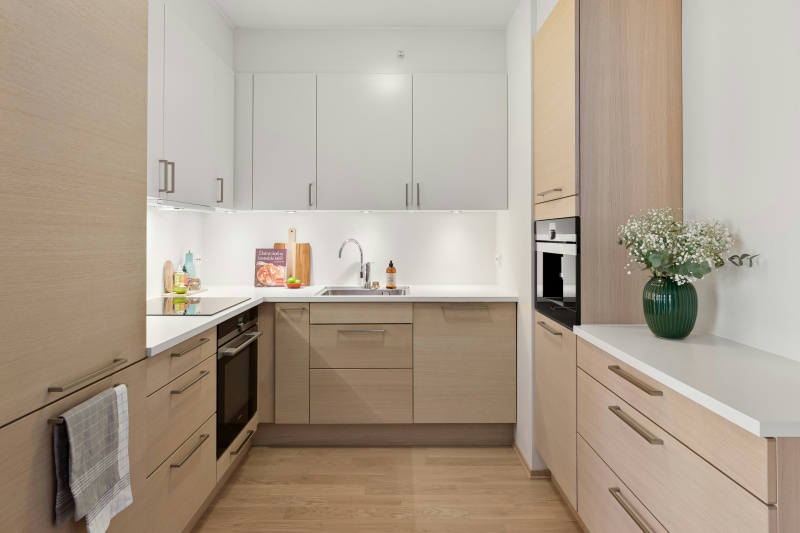 Material Selection for Brown and White Kitchen Cabinets for Projects