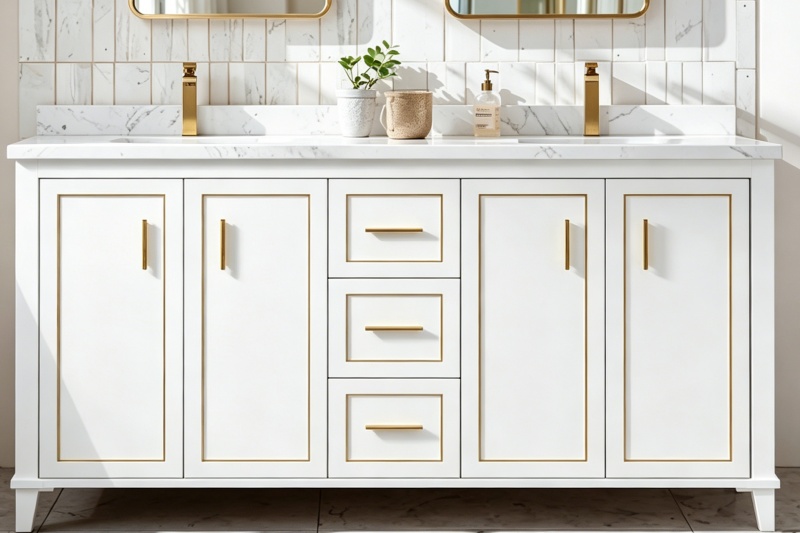 We supply wholesale white bathroom vanities with white quartz countertops, providing cost-effective bathroom storage solutions tailored for bulk purchasing and engineering projects.