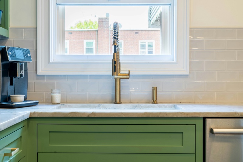 Distinct from frameless kitchen cabinets, Union Woods’ sage green framed kitchen cabinets adopt a traditional frame structure. The cabinet doors are connected to the frames on the cabinet body via hinges, which ensures structural stability and enhances the load-bearing capacity of the cabinets.
